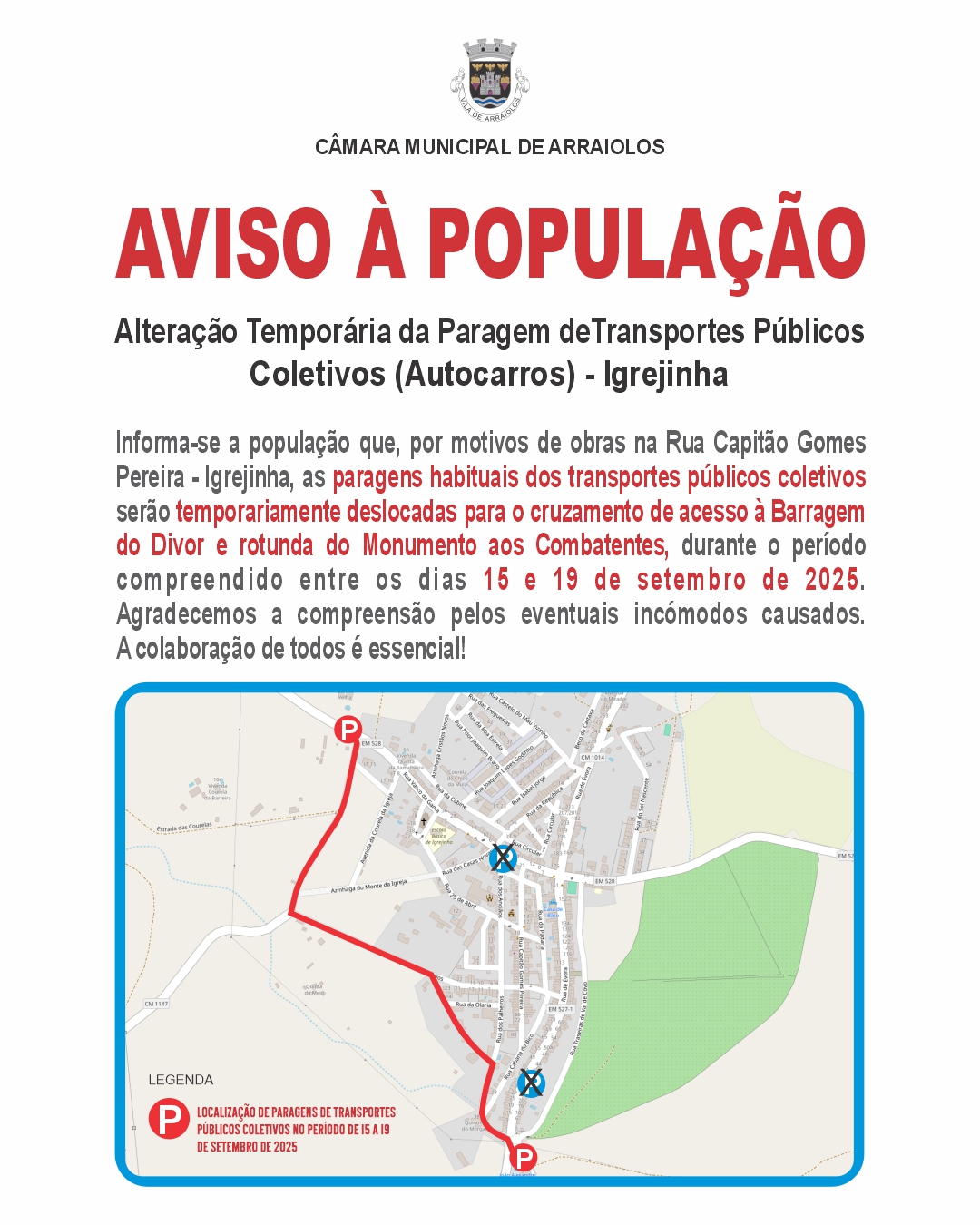 AVISO À POPULAÇÃO-Alteração Temporária da Paragem de Transportes Públicos Coletivos (Autocarros) – Igrejinha