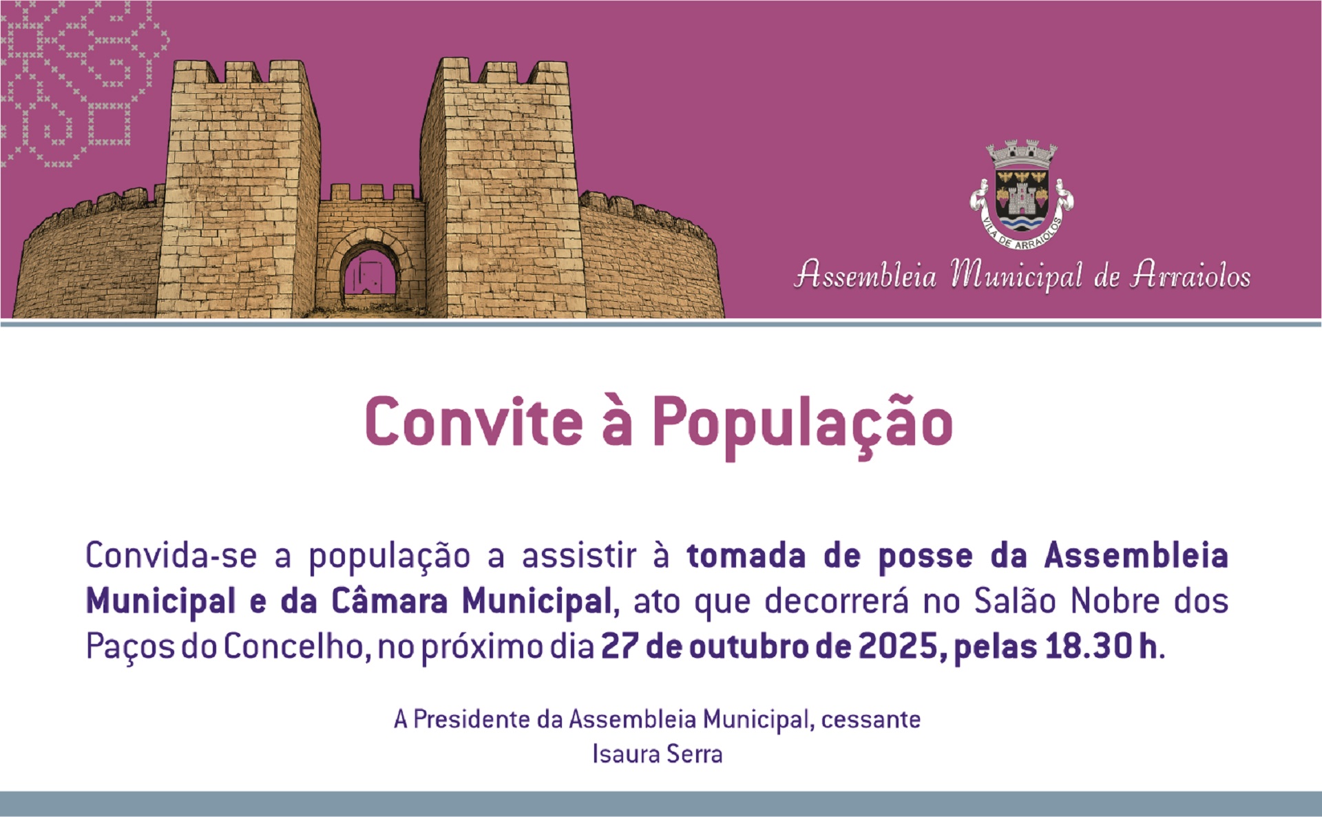 Início > Notícias > Convite – Tomada de Posse – Assembleia Municipal e Câmara Municipal